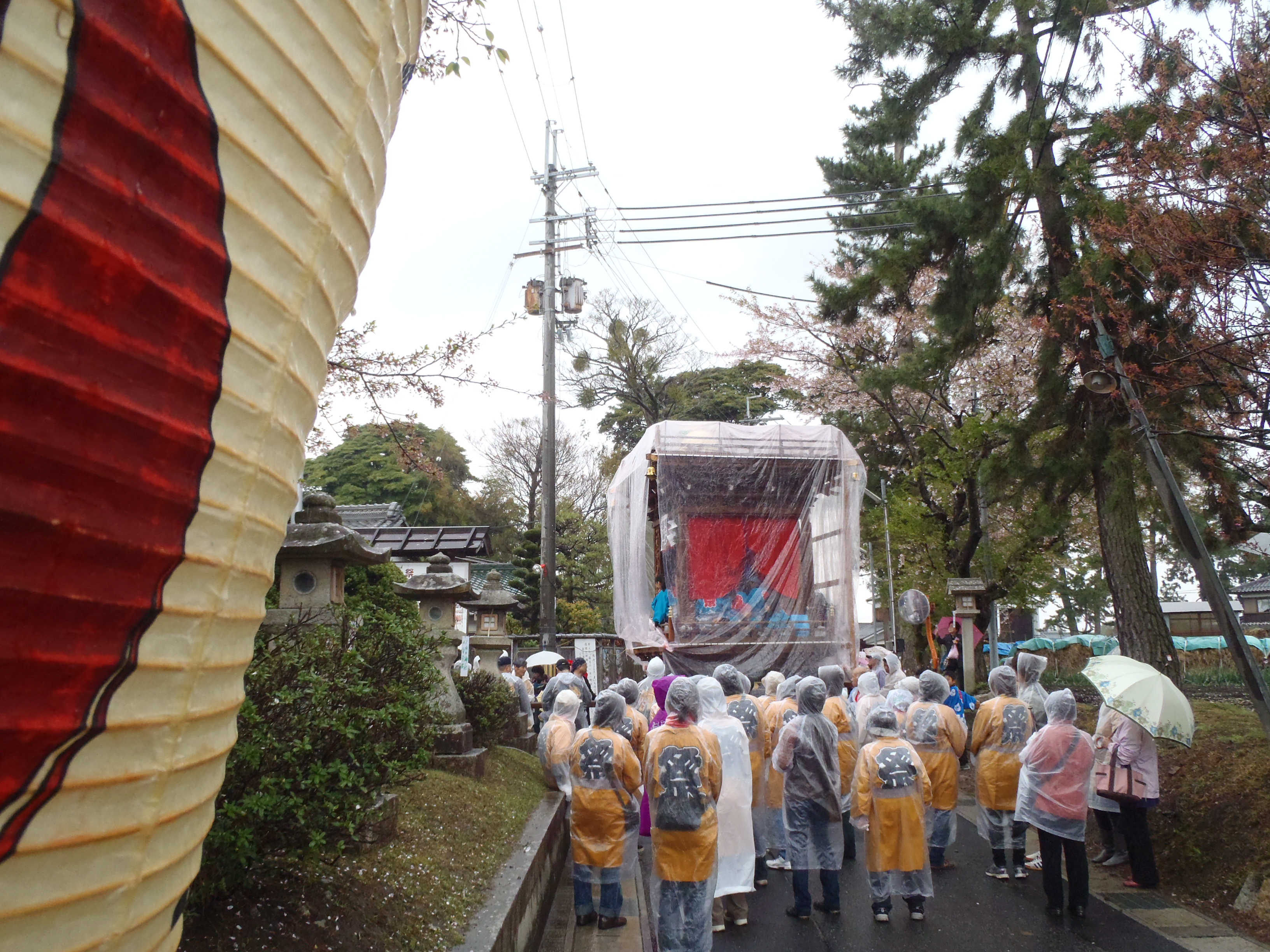 16:00頃 柳町の曳山を神社前の山倉から自町へ移動